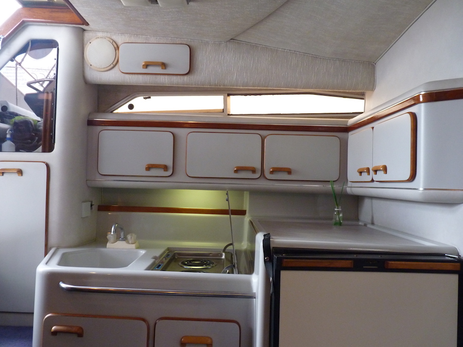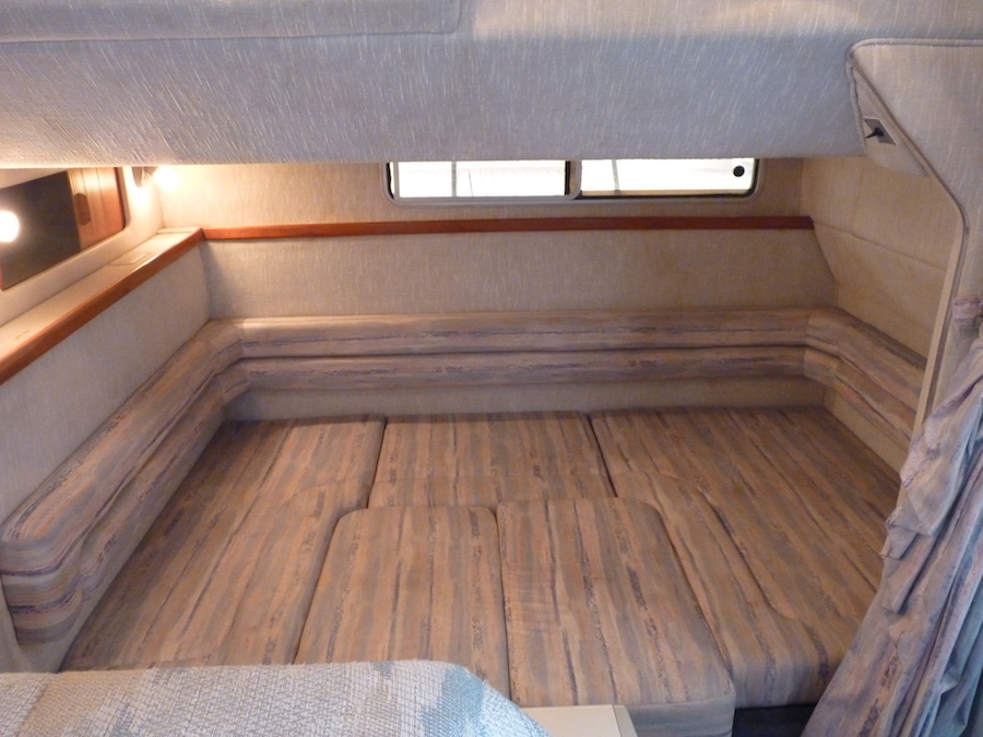 La embarcación está equipada con tres camarotes dobles para 2 personas, uno en proa, uno en popa y otro en estribor.