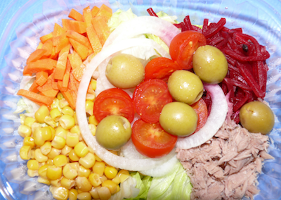 Solárium con colchonetas en proa / mesa y bancos en bañera / toldo parasol / gran plataforma con escalera de baño.